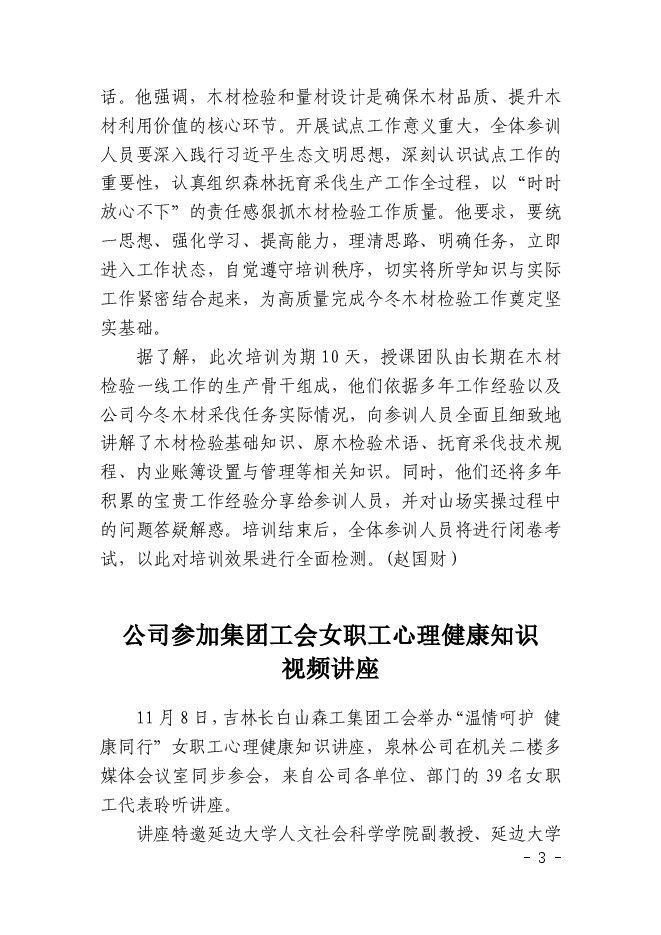 泉陽林業(yè)有限公司信息2024年第64期